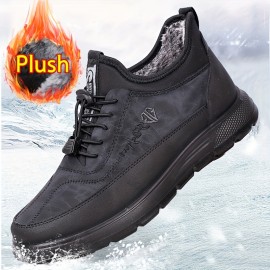 メンズスタイリッシュブラックウィンターブーツ - プラッシュライニング、ノンスリップカジュアルスニーカー、レースアップクロージャー、屋外活動や日常着用に最適、冬用靴 | スタイリッシュな冬用ブーツ | スリッポンブーツ、厚みあり