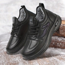 メンズ保温雪用ブーツ、ファー裏地付き襟&滑りにくいラバーソール・レースアップクロージャー - 冷たい天候向け厚手カジュアルショートブーツ、ブラック|モダンな冬の靴|ウィンターブーツ