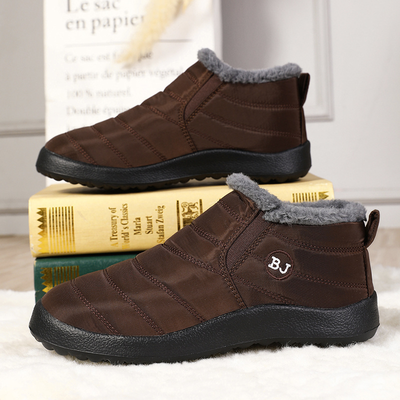 メンズ スリッポン ウォーム プラッシュ ライニング スノー ブーツ、冬用 屋外 ストリート ウォーキング カジュアル アクティビティ 旅行