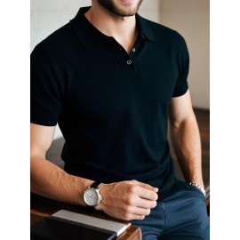 メンズ多用途カジュアル半袖ニットポロシャツ - ソフトストレッチファブリック、クラシックソリッドカラー、ラペルカラー、カジュアルアットワード、カジュアルウェア | カジュアルスタイル | ニット構造