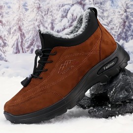メンズスタイリッシュブラックウィンターブーツ - プラッシュライニング、ノンスリップカジュアルスニーカー、レースアップクロージャー、屋外活動や日常着用に最適、冬用靴 | スタイリッシュな冬用ブーツ | スリッポンブーツ、厚みあり