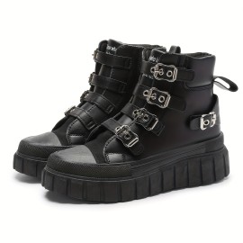 レディースオールシーズンブラックプラットフォームアンクルブーツ、厚底、快適、カジュアル