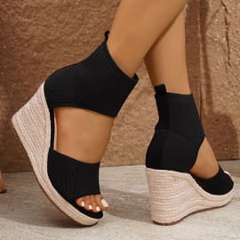 ファッション エラスティック ニット アンクル ブーティ レディース - カジュアル 無地 スリッポン プラットフォーム ヒール ブーツ オープン トゥ、ファブリック アッパー & インナー、TPR ソール、ハイヒール - スタイリッシュな秋の季節の履物 アウトドア、休暇、パーティー