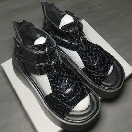 レディースオールシーズンブラックプラットフォームアンクルブーツ、厚底、快適、カジュアル